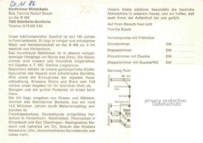 74041091 Sontheim Stubental Sontheimer Wirtshaeusle Gastraum postalisch nicht gelaufen Werbekarte (keine Postkarte) Erhaltung siehe scans [FriedD77] KatCode: 11110008135032