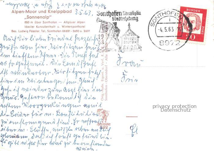 74155963 alte Postkarte Sonthofen Allgaeu Bayern Alpen Moorbad Sonnenalp Wintergarten postalisch gelaufen Erhaltung siehe scans [WerneD78] KatCode: 11110009780139