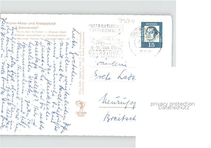 71933415 alte Postkarte Sonthofen Leutkirch Alpen Moor Kneippbad Sonnenalp Wintergarten postalisch gelaufen Erhaltung siehe scans KatCode: 11110008436055