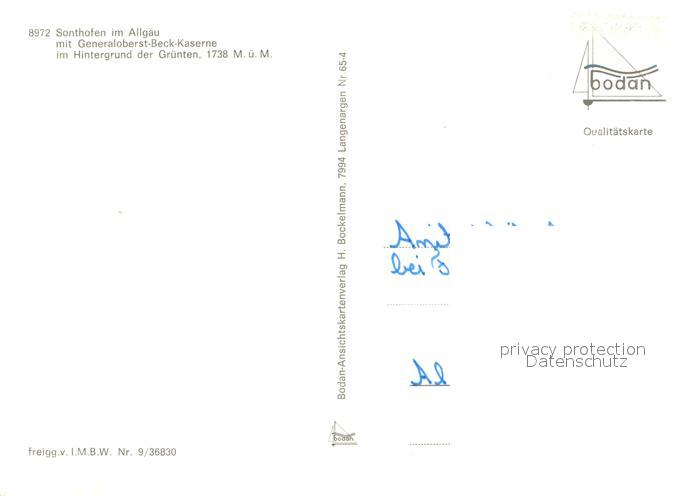 73645768 Sonthofen Leutkirch Fliegeraufnahme mit Generaloberst Beck Kaserne und Gruenten postalisch nicht gelaufen Erhaltung siehe scans [WerneD78] KatCode: 11110008436055