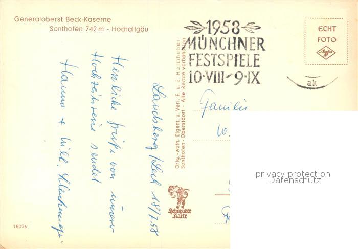 73333236 alte Postkarte Sonthofen Leutkirch mit Generaloberst Beck Kaserne postalisch gelaufen Erhaltung siehe scans [WerneD78] KatCode: 11110008436055