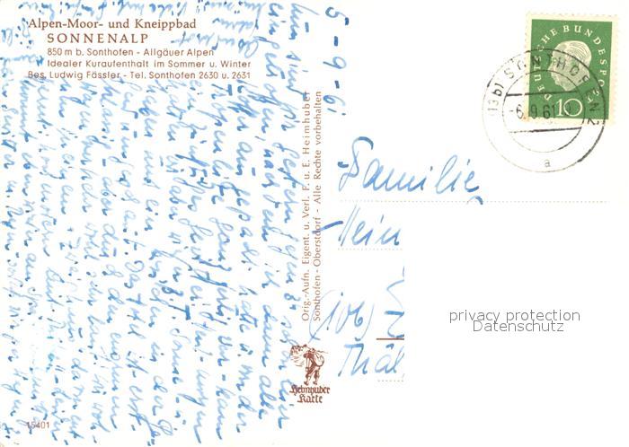 73569302 alte Postkarte Sonthofen Oberallg Sonnenalp postalisch gelaufen Erhaltung siehe scans [PaolaD17] KatCode: