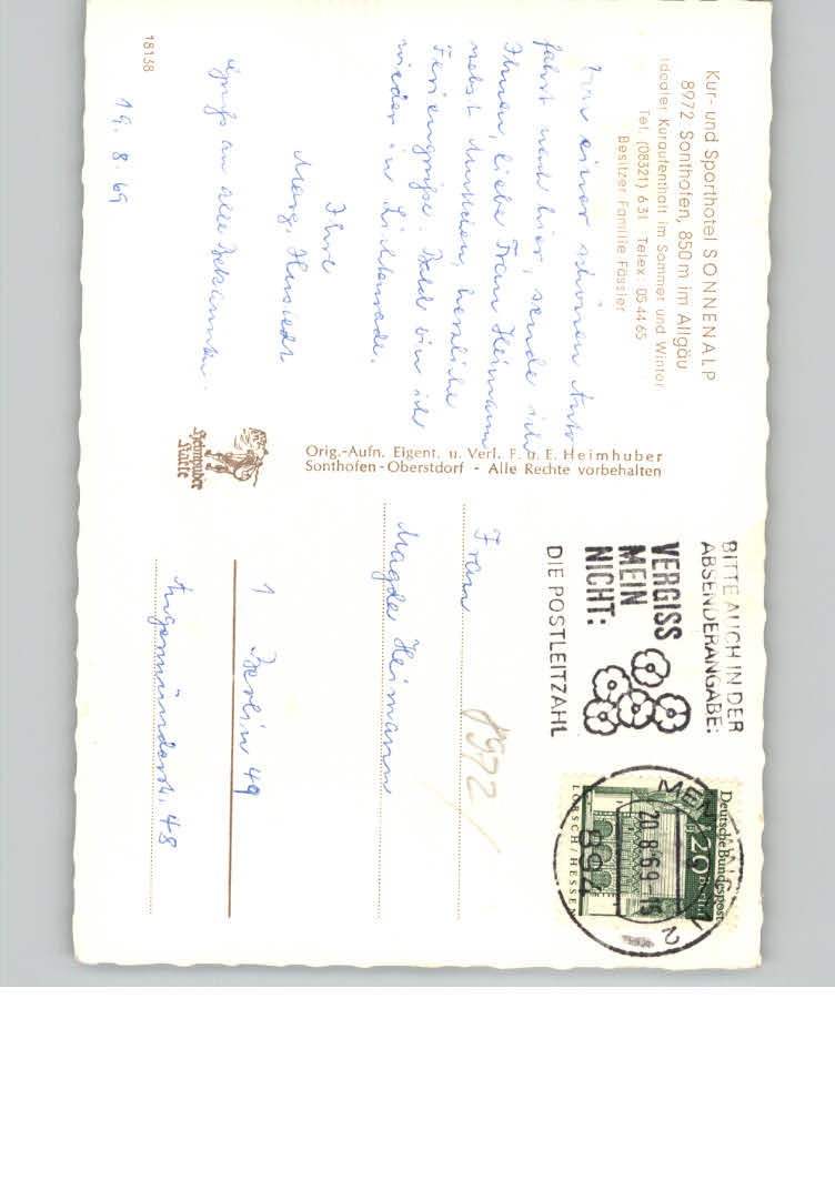 31174236 Sonthofen Oberallgaeu postalisch nicht gelaufen KatCode: 11110009780139