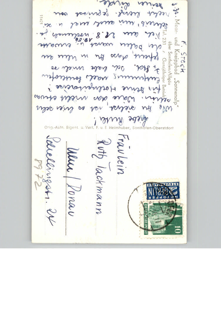 31174165 Sonthofen Oberallgaeu postalisch nicht gelaufen KatCode: 11110009780139