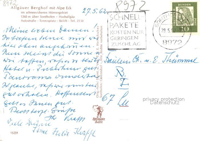 73177028 alte Postkarte Sonthofen Oberallgaeu Allgaeuer Berghof postalisch gelaufen Erhaltung siehe scans [NatalD47] KatCode: 11110009780139