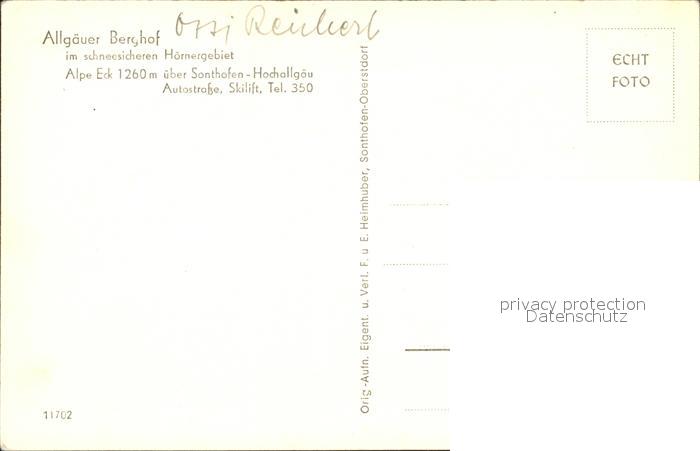 72506957 Sonthofen Oberallgaeu Allgaeuer Berghof postalisch nicht gelaufen Erhaltung siehe scans KatCode: 11110009780139