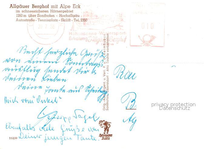 73093742 alte Postkarte Sonthofen Oberallgaeu Allgaeuer Berghof Alpe Eck postalisch gelaufen Erhaltung siehe scans [KathaD81] KatCode: 11110009780139