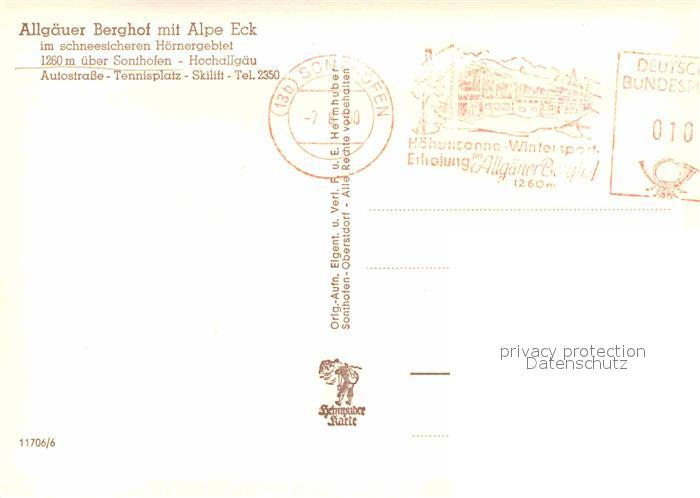 72793763 alte Postkarte Sonthofen Oberallgaeu Allgaeuer Berghof Alpe Eck postalisch gelaufen Erhaltung siehe scans [AndreD76] KatCode: 11110009780139