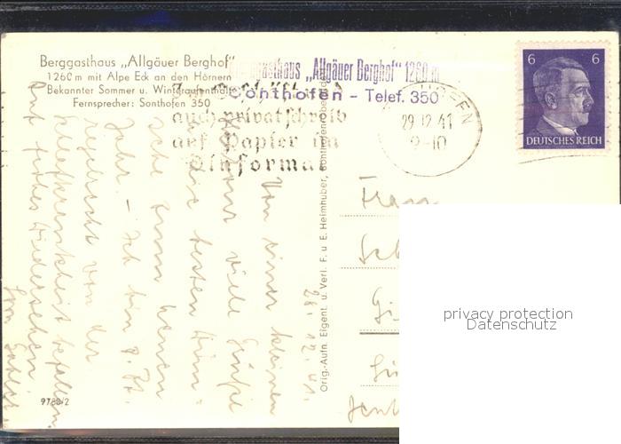 72146709 alte Postkarte Sonthofen Oberallgaeu Allgaeuer Berghof Berggasthof postalisch gelaufen Erhaltung siehe scans KatCode: 11110009780139