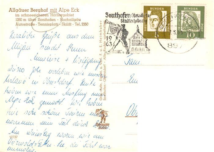 73880531 alte Postkarte Sonthofen Oberallgaeu Allgaeuer Berghof im Hoernergebiet Restaurant Terrasse Alpenpanorama postalisch gelaufen Erhaltung siehe scans [FriedD77] KatCode: 11110009780139