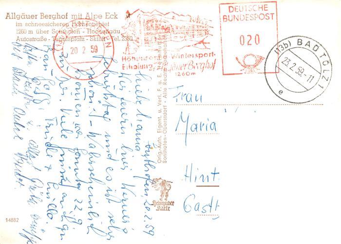 73881601 alte Postkarte Sonthofen Oberallgaeu Allgaeuer Berghof mit Alpe Eck postalisch gelaufen Erhaltung siehe scans [WerneD78] KatCode: 11110009780139