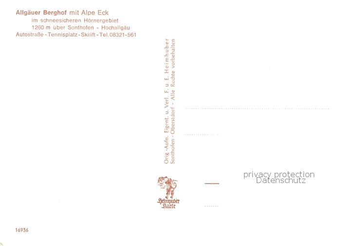 73803488 Sonthofen Oberallgaeu Allgaeuer Berghof mit Alpe Eck postalisch nicht gelaufen Erhaltung siehe scans [WerneD78] KatCode: 11110009780139
