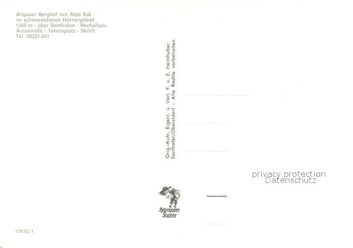 73295282 Sonthofen Oberallgaeu Allgaeuer Berghof mit Alpe Eck postalisch nicht gelaufen Erhaltung siehe scans [WerneD78] KatCode: 11110009780139