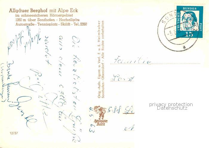 72785519 alte Postkarte Sonthofen Oberallgaeu Allgaeuer Berghof mit Alpe Eck postalisch gelaufen Erhaltung siehe scans [AndreD76] KatCode: 11110009780139