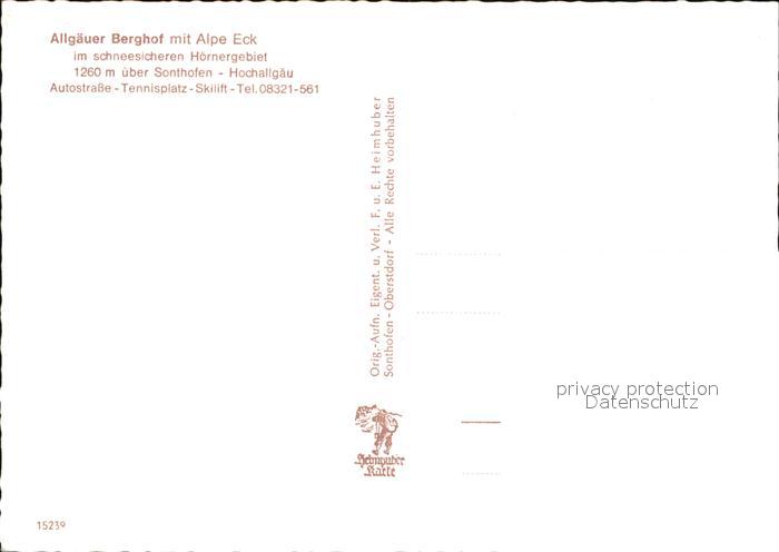 72466055 Sonthofen Oberallgaeu Allgaeuer Berghof mit Alpe Eck postalisch nicht gelaufen Erhaltung siehe scans KatCode: 11110009780139