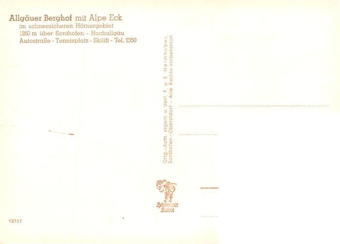 73904143 Sonthofen Oberallgaeu Allgaeuer Berghof mit Alpe Eck postalisch nicht gelaufen Erhaltung siehe scans [WerneD78] KatCode: 11110009780139
