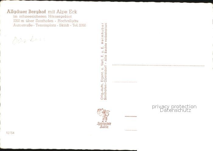 72451132 Sonthofen Oberallgaeu Allgaeuer Berghof mit Alpe Eck Hoernergebiet postalisch nicht gelaufen Erhaltung siehe scans KatCode: 11110009780139