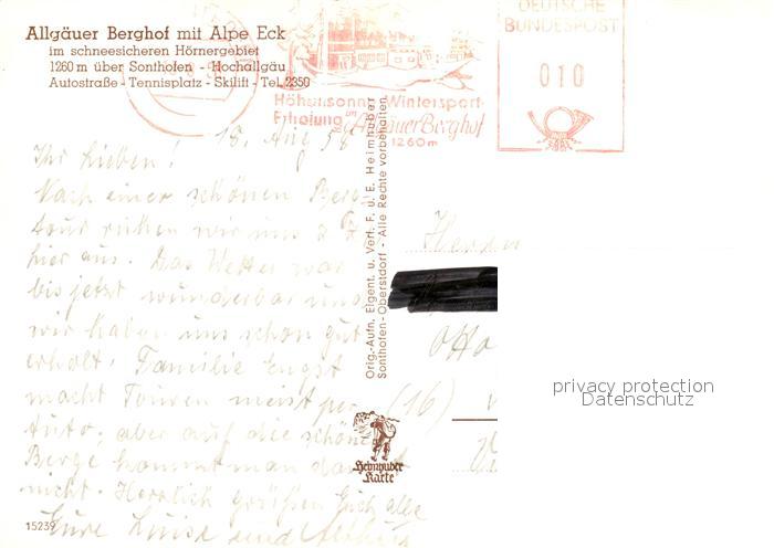 73230391 alte Postkarte Sonthofen Oberallgaeu Allgaeuer Berghof mit Alpe Eck Hoernergebiet postalisch gelaufen Erhaltung siehe scans [FriedD77] KatCode: 11110009780139