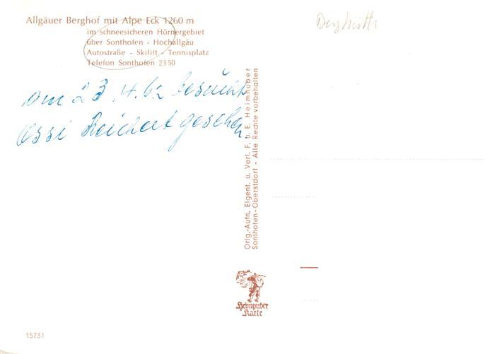 73932135 Sonthofen Oberallgaeu Allgaeuer Berghof mit Alpe Eck im Hoernergebiet Wintersportplatz Allgaeuer Alpen postalisch nicht gelaufen Erhaltung siehe scans [FriedD77] KatCode: 11110009780139