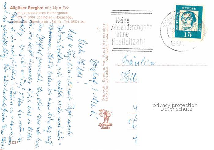 72776544 alte Postkarte Sonthofen Oberallgaeu Alpe Eck Berghof postalisch gelaufen Erhaltung siehe scans [KathaD81] KatCode: 11110009780139