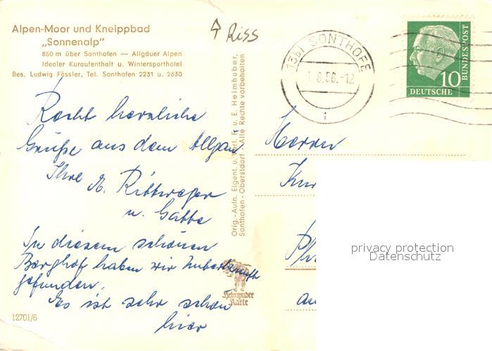 73094828 alte Postkarte Sonthofen Oberallgaeu Alpen Moor Kneippbad Sonnenalp postalisch gelaufen Erhaltung siehe scans [KathaD81] KatCode: 11110009780139