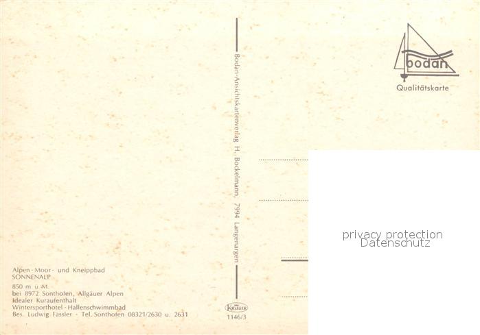 72989622 Sonthofen Oberallgaeu Alpen Moor und Kneippbad Sonnenalp postalisch nicht gelaufen Erhaltung siehe scans [WerneD78] KatCode: 11110009780139