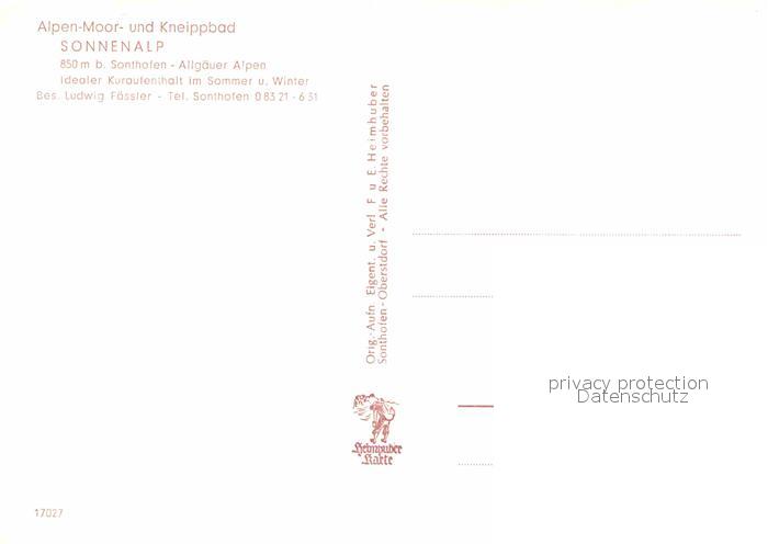 72891877 Sonthofen Oberallgaeu Alpen- Moor und Kneippbad Sonnenalp postalisch nicht gelaufen Erhaltung siehe scans [AndreD76] KatCode: 11110009780139