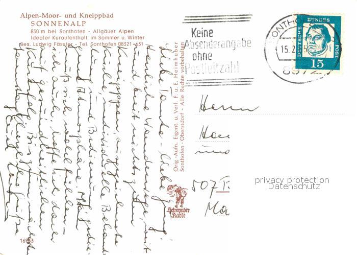 72675027 alte Postkarte Sonthofen Oberallgaeu Alpen Moor und Kneippbad Sonnenalp postalisch gelaufen Erhaltung siehe scans [WerneD78] KatCode: 11110009780139