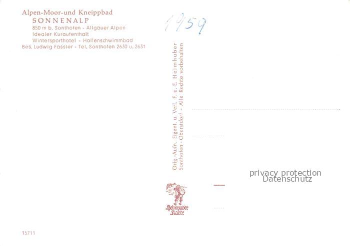 74043201 Sonthofen Oberallgaeu Alpen Moor und Kneippbad Sonnenalp postalisch nicht gelaufen Erhaltung siehe scans [WerneD78] Wern Katcode 11110009780139