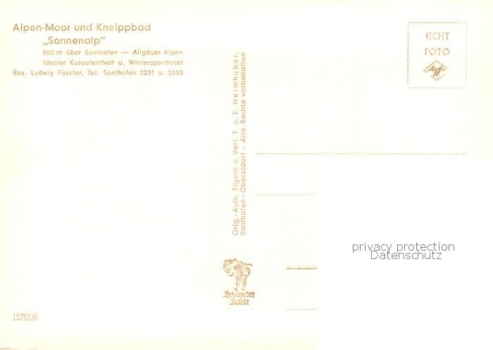 73803487 Sonthofen Oberallgaeu Alpen Moor und Kneippbad Sonnenalp postalisch nicht gelaufen Erhaltung siehe scans [WerneD78] KatCode: 11110009780139