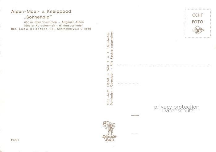 72944955 Sonthofen Oberallgaeu Alpen Moor und Kneippbad Sonnenalp Hotel Alpenpanorama postalisch nicht gelaufen Erhaltung siehe scans [FriedD77] KatCode: 11110009780139