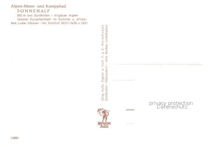 73072547 Sonthofen Oberallgaeu Alpen Moorbad Sonnenalp postalisch nicht gelaufen Erhaltung siehe scans [WerneD78] KatCode: 11110009780139