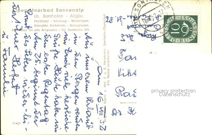 72404222 alte Postkarte Sonthofen Oberallgaeu Alpen Moorbad postalisch gelaufen Erhaltung siehe scans KatCode: 11110009780139