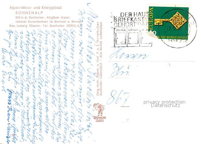 73162573 alte Postkarte Sonthofen Oberallgaeu Alpenmoor und Kneippbad Sonnenalp Blumenbeet postalisch gelaufen Erhaltung siehe scans [FriedD77] KatCode: 11110009780139