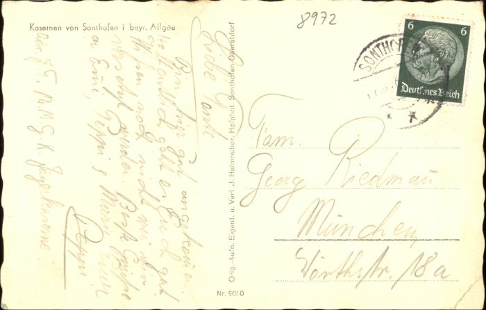 30726927 alte Postkarte Sonthofen Oberallgaeu aserne postalisch gelaufen KatCode: 11110009780139