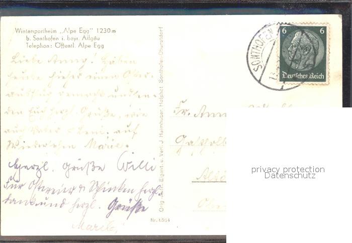 72147202 alte Postkarte Sonthofen Oberallgaeu Berggasthaus Alpe Egg postalisch gelaufen Erhaltung siehe scans KatCode: 11110009780139