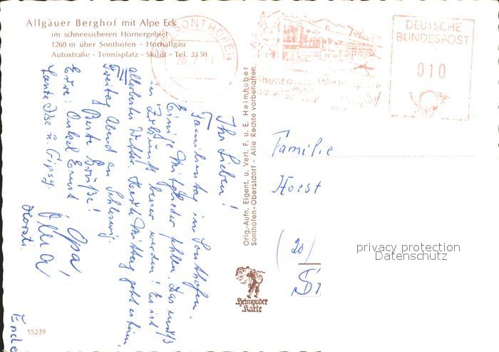 71909365 alte Postkarte Sonthofen Oberallgaeu Berghof Alpe Eck postalisch gelaufen Erhaltung siehe scans KatCode: 11110009780139