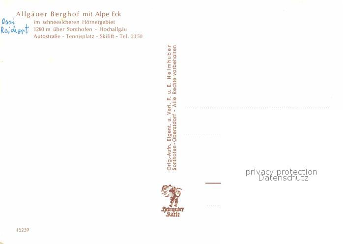 72856929 Sonthofen Oberallgaeu Berghof mit Alpe Eck postalisch nicht gelaufen Erhaltung siehe scans [AndreD76] KatCode: 11110009780139