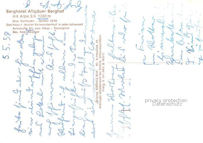 73295658 Sonthofen Oberallgaeu Berghotel Allgaeuer Berghof mit Alpe Eck postalisch nicht gelaufen Erhaltung siehe scans [LiesaD40] KatCode: 11110009780139