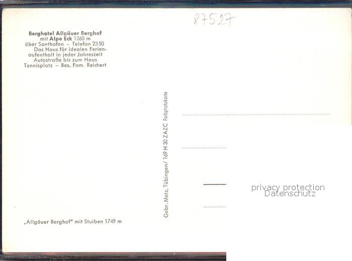 72151692 Sonthofen Oberallgaeu Berghotel Allgaeuer Berghof mit Alpe Eck postalisch nicht gelaufen Erhaltung siehe scans KatCode: 11110009780139