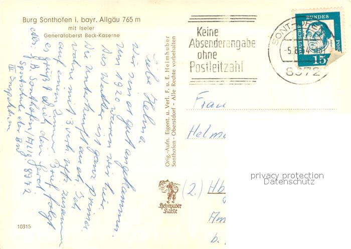 73669637 alte Postkarte Sonthofen Oberallgaeu Burg Generaloberst Beck Kaserne postalisch gelaufen Erhaltung siehe scans [FriedD77] KatCode: 11110009780139