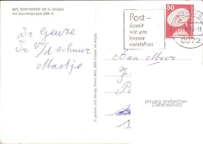 72255268 alte Postkarte Sonthofen Oberallgaeu Daumengruppe postalisch gelaufen Erhaltung siehe scans KatCode: 11110009780139