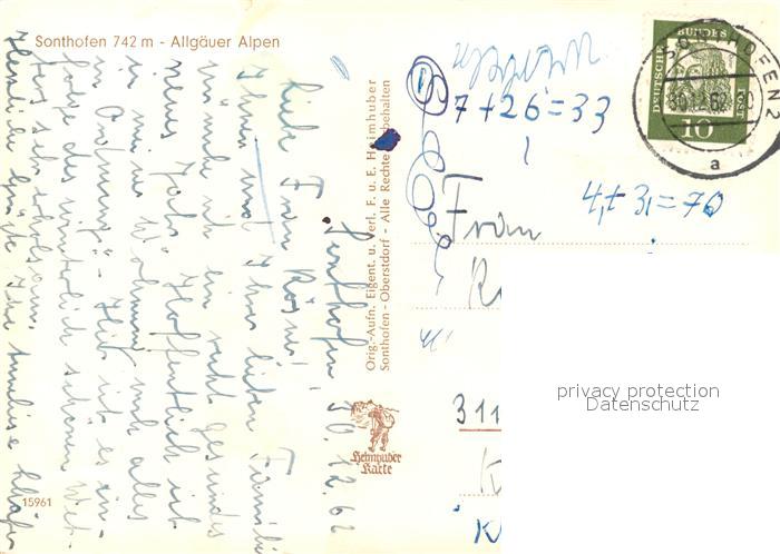 73036307 alte Postkarte Sonthofen Oberallgaeu Fliegeraufnahme postalisch gelaufen Erhaltung siehe scans [KathaD81] KatCode: 11110009780139