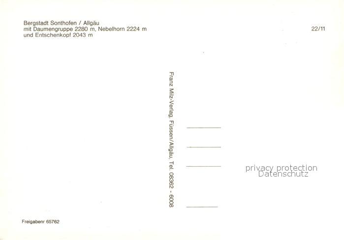 73172427 Sonthofen Oberallgaeu Fliegeraufnahme Daumengruppe Nebelhorn Entschenkopf postalisch nicht gelaufen Erhaltung siehe scans [PaolaD17] KatCode: 11110009780139