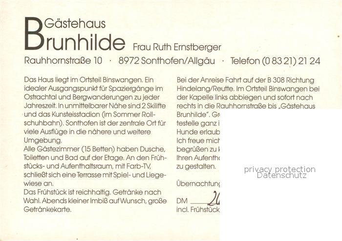 73544731 Sonthofen Oberallgaeu Gaestehaus Brunhilde Panorama postalisch nicht gelaufen Werbekarte (keine Postkarte) Erhaltung siehe scans [WerneD78] KatCode: 11110009780139
