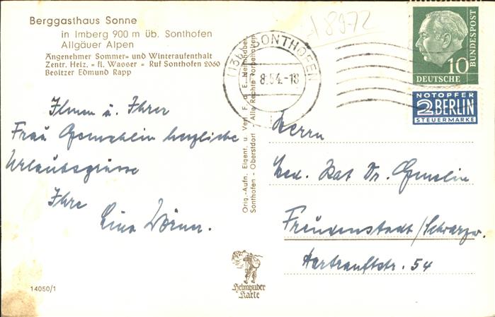 40994731 Sonthofen Oberallgaeu Gasthaus Sonne Grünten KatCode 11110009780139