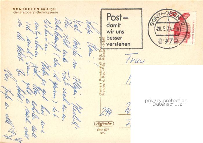 73745715 alte Postkarte Sonthofen Oberallgaeu Generaloberst-Beck-Kaserne postalisch gelaufen Erhaltung siehe scans [LiesaD40] KatCode: 11110009780139