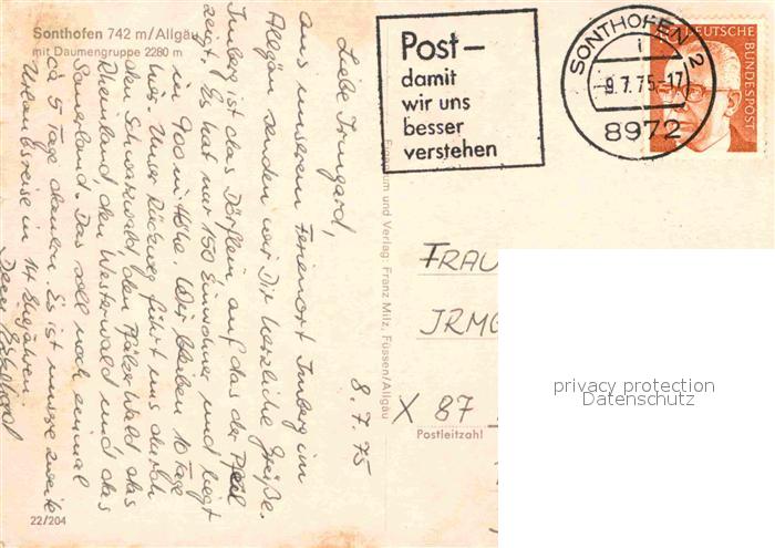 72865356 alte Postkarte Sonthofen Oberallgaeu Gesamtansicht mit Daumengruppe Allgaeuer Alpen postalisch gelaufen Erhaltung siehe scans [FriedD77] KatCode: 11110009780139