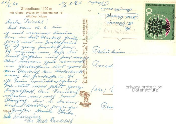 73135713 alte Postkarte Sonthofen Oberallgaeu Giebelhaus Berggasthof mit Giebel im Hintersteiner Tal Allgaeuer Alpen postalisch gelaufen Erhaltung siehe scans [FriedD77] KatCode: 11110009780139