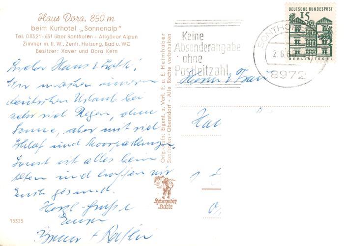 73905785 alte Postkarte Sonthofen Oberallgaeu Haus Dora Gaststube postalisch gelaufen Erhaltung siehe scans [FriedD77] KatCode: 11110009780139